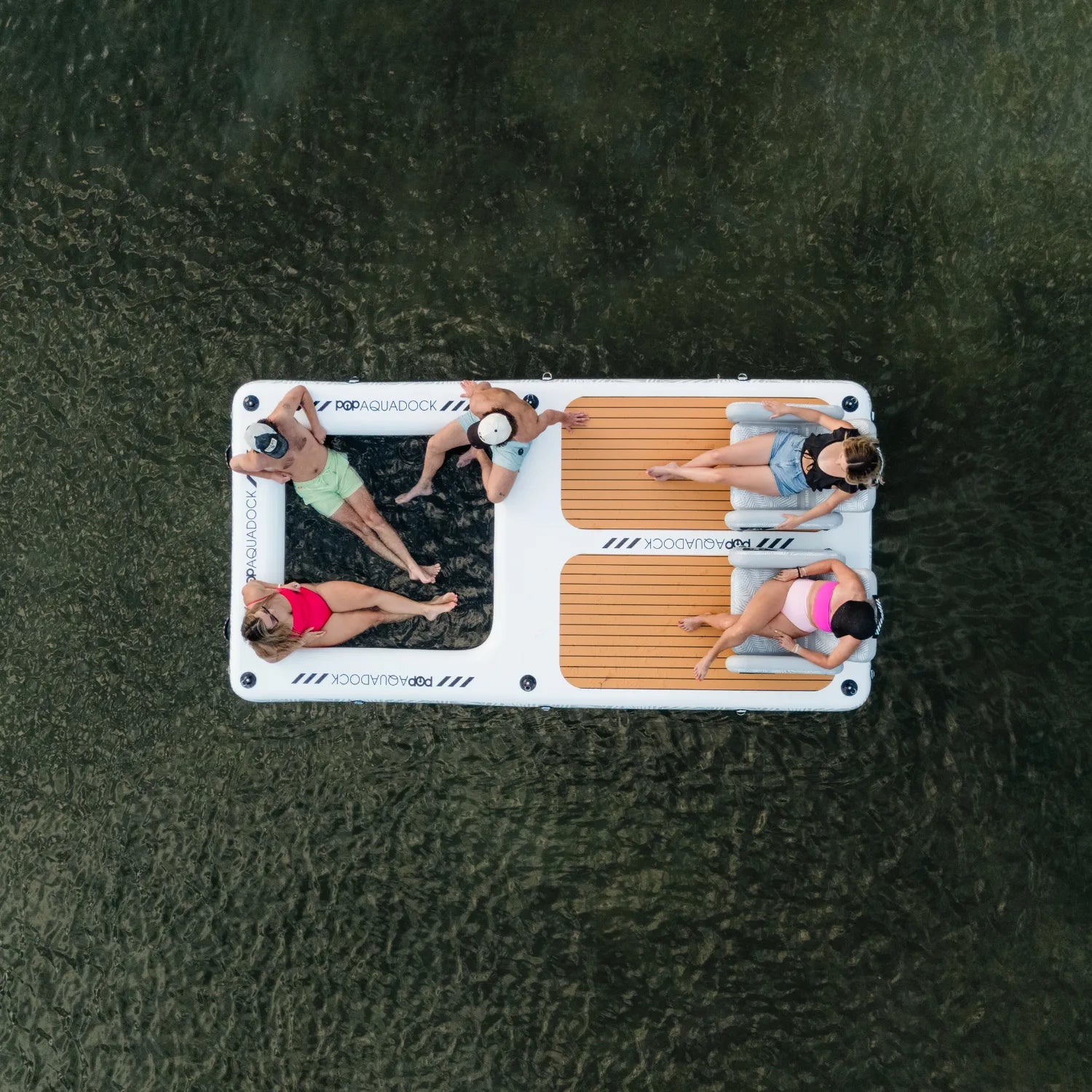 From relaxing to raging this multi-use platform is a great addition to anyone’s boat or yacht, and allows for the best beach days ever! Made with the same technology used in our award-winning paddleboards, this product is designed to add a more social environment to your day on the water. The Inflatable AquaDock is 14 ft x 7 ft x 8″, 67lbs deflated and hold up to 2,000 lbs inflated. The teak traction pad is included, Includes 6 cup holders and 16 durable D-rings to secure coolers, chairs, or gear.The POP Up chair set is the ultimate fusion of style, comfort, and versatility for your outdoor adventures. Crafted with precision and designed for those who seek a premium seating solution without compromising on portability, this innovative inflatable chair promises to elevate your outdoor experiences, and is a perfect addition to your POP UP AquaDock!Package includes: