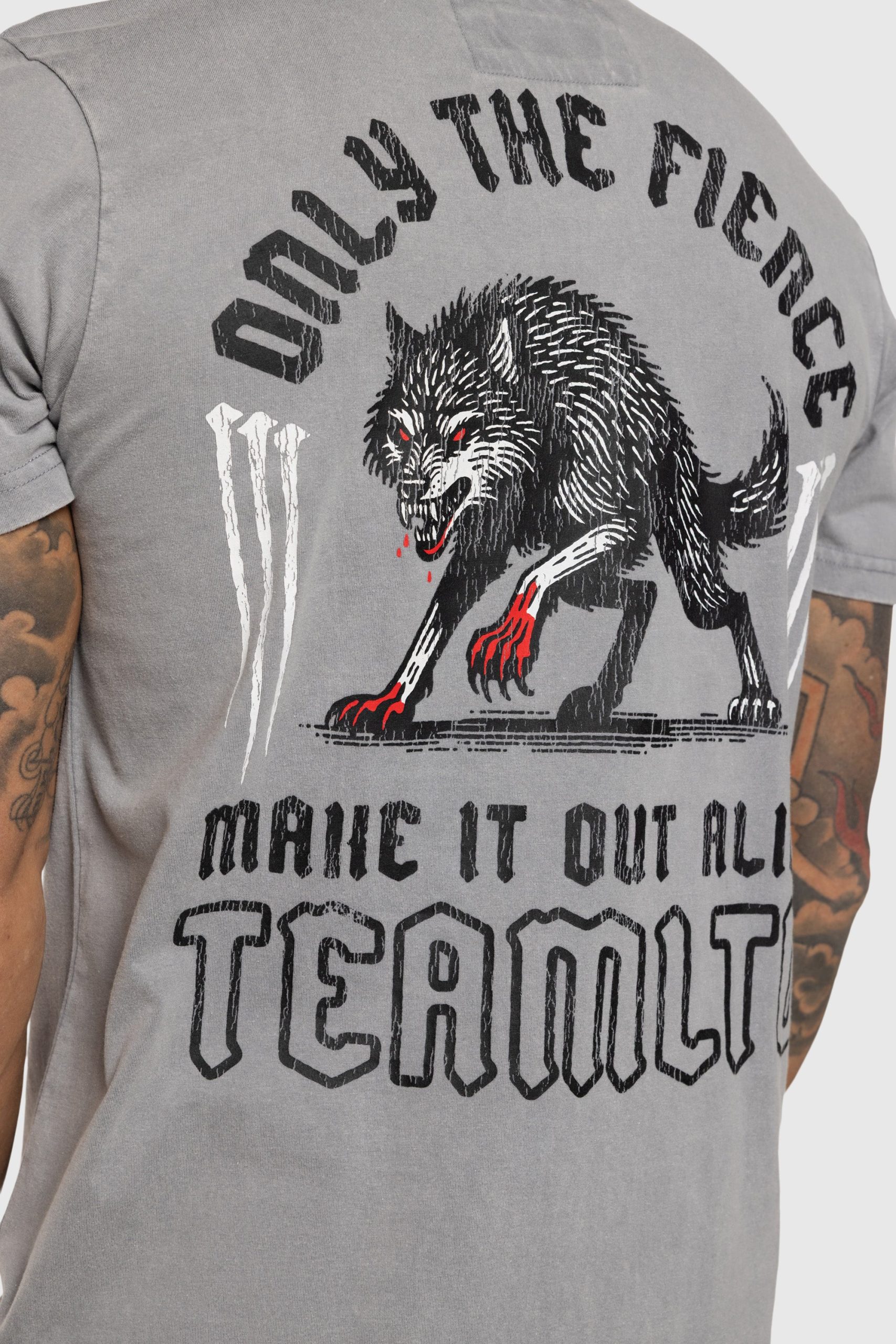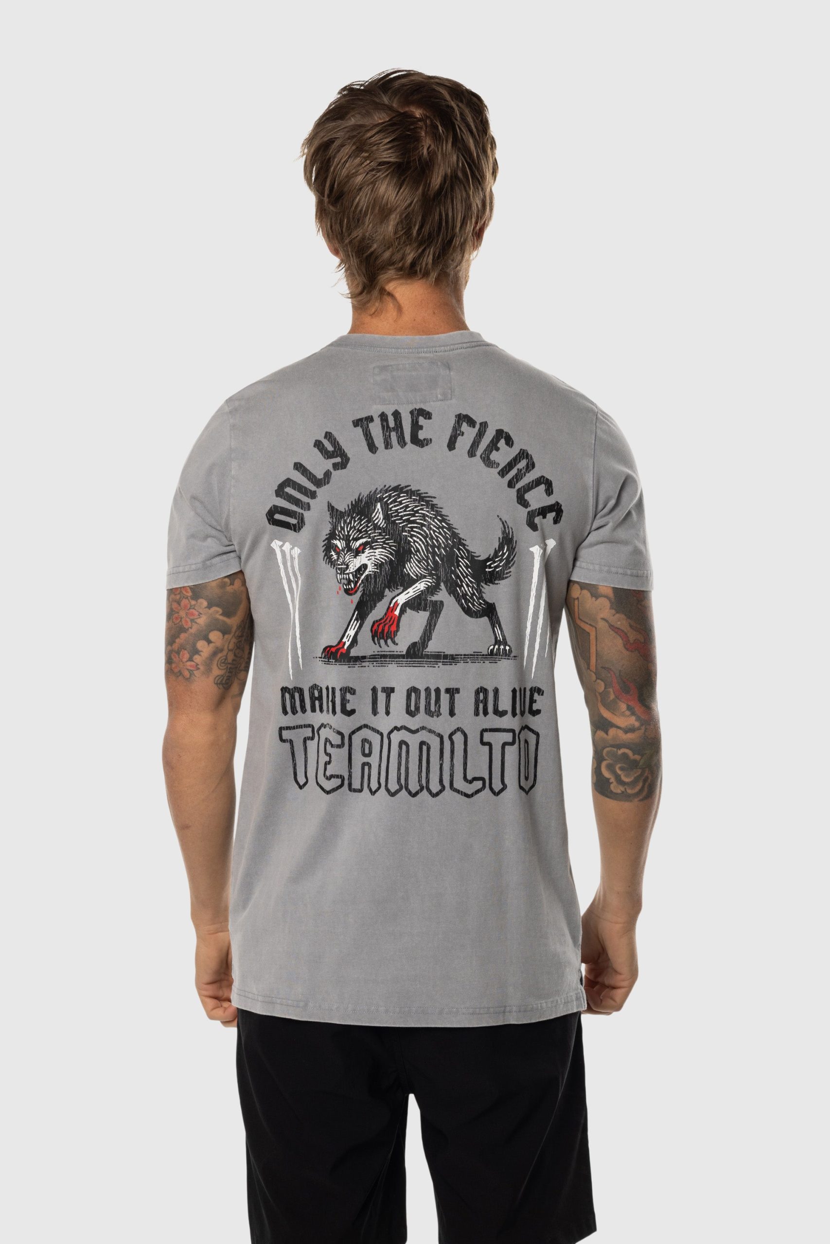 Embrace the spirit of resilience with the Only The Fierce Tee. Designed with a vintage-washed finish for a perfectly worn-in feel, this t-shirt blends effortless comfort with a bold yet timeless aesthetic. A subtly distressed graphic of a lone wolf pairs with the phrase “Only the fierce make it out alive,” a reminder of strength and perseverance.